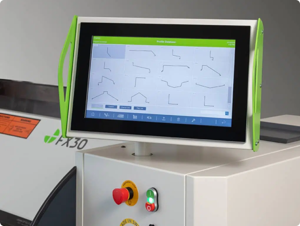 ProLink is an innovative Windows-based software featuring touch screen control with a 15.6″, 18.5″ or 21.5″ color monitor, depending on the machine model or selected option. With its large screen and easy navigation, this control system is easy to understand and learn. Interactive graphic pictures show the operator instructions on how to flip parts making it simple to accurately produce complicated details.