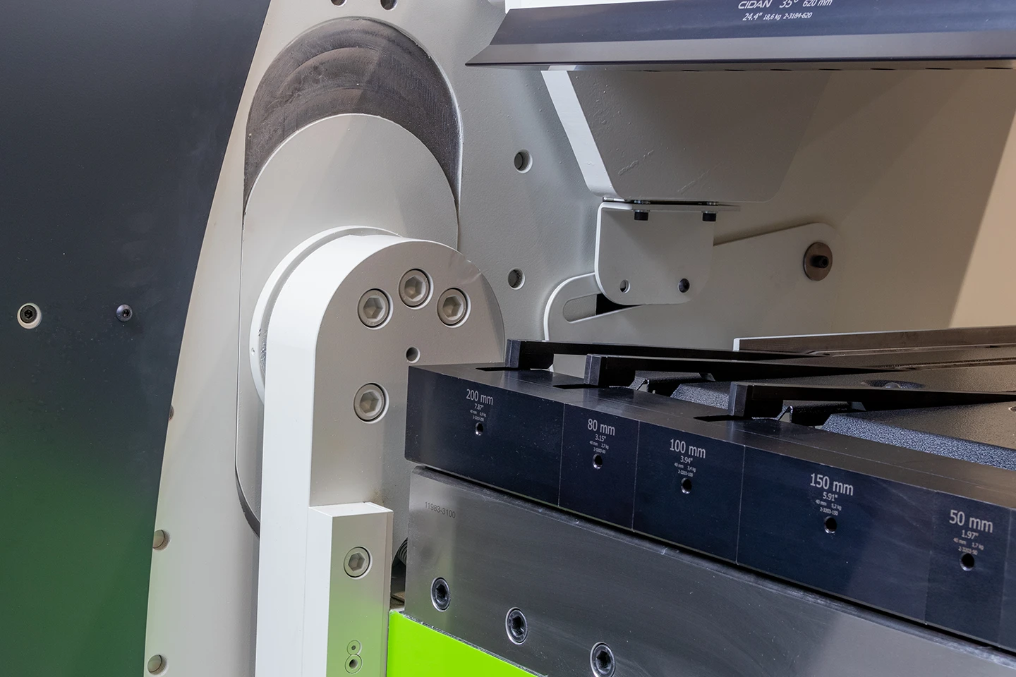 The CIDAN MEGAPRO folding machine is a powerful and robust folder, making it possible to bend perfect parts in 6 mm steel and 4 mm stainless steel (with a working length of 3.1 m). The beams and side plates easily absorb the large bending forces. Despite MEGAPRO’s strong construction, its use and programming are very smooth and user-friendly.